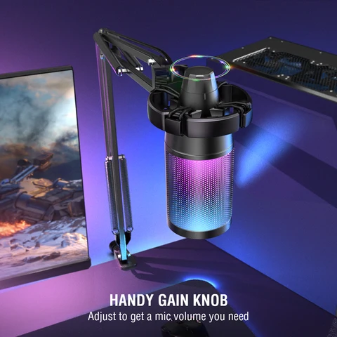 FIFINE USB Gaming Microphone Kit for PC,PS4/5 Condenser Cardioid Mic Set with Mute Button/RGB /Arm Stand,for Streaming Video-A6T