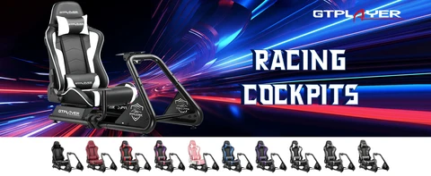 GTPLAYER Racing Simulator Cockpit with Seat, Sim Racing Cockpit Multi-function Adjustable Gaming Wheel Stand for G25 G27 G29