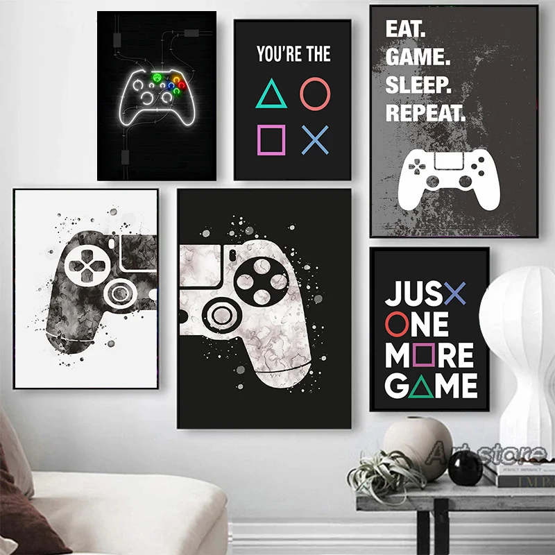 Gaming Room Canvas Paintings Gamepad Abstract Posters and Prints Wall Art Pictures Gamer Gift for Boys Children Room Decor