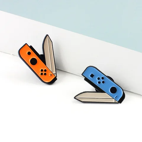 Enamel Pin Orange Blue Knife Gamepad Game Brooch Pin Switch Nintendo Gamepad Knife Jewelry Gift Boy Girl Fun Badge