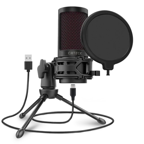 USB Microphone, CMTECK Condenser Gaming Desktop Mic for PC Laptop, with Mute Button, Anti-Vibration Shock Mount, Pop Filter