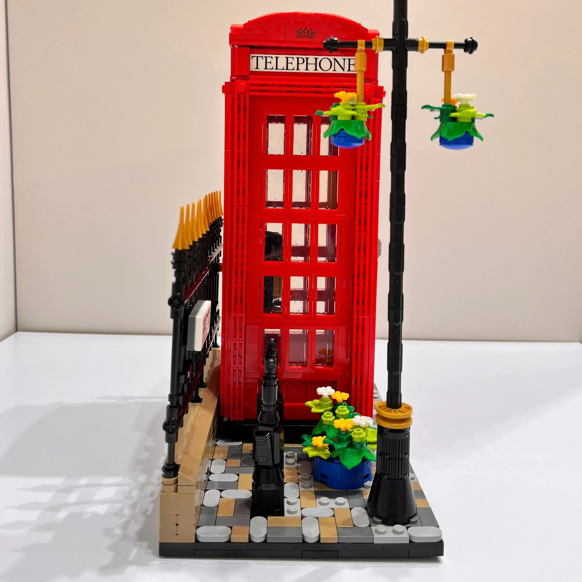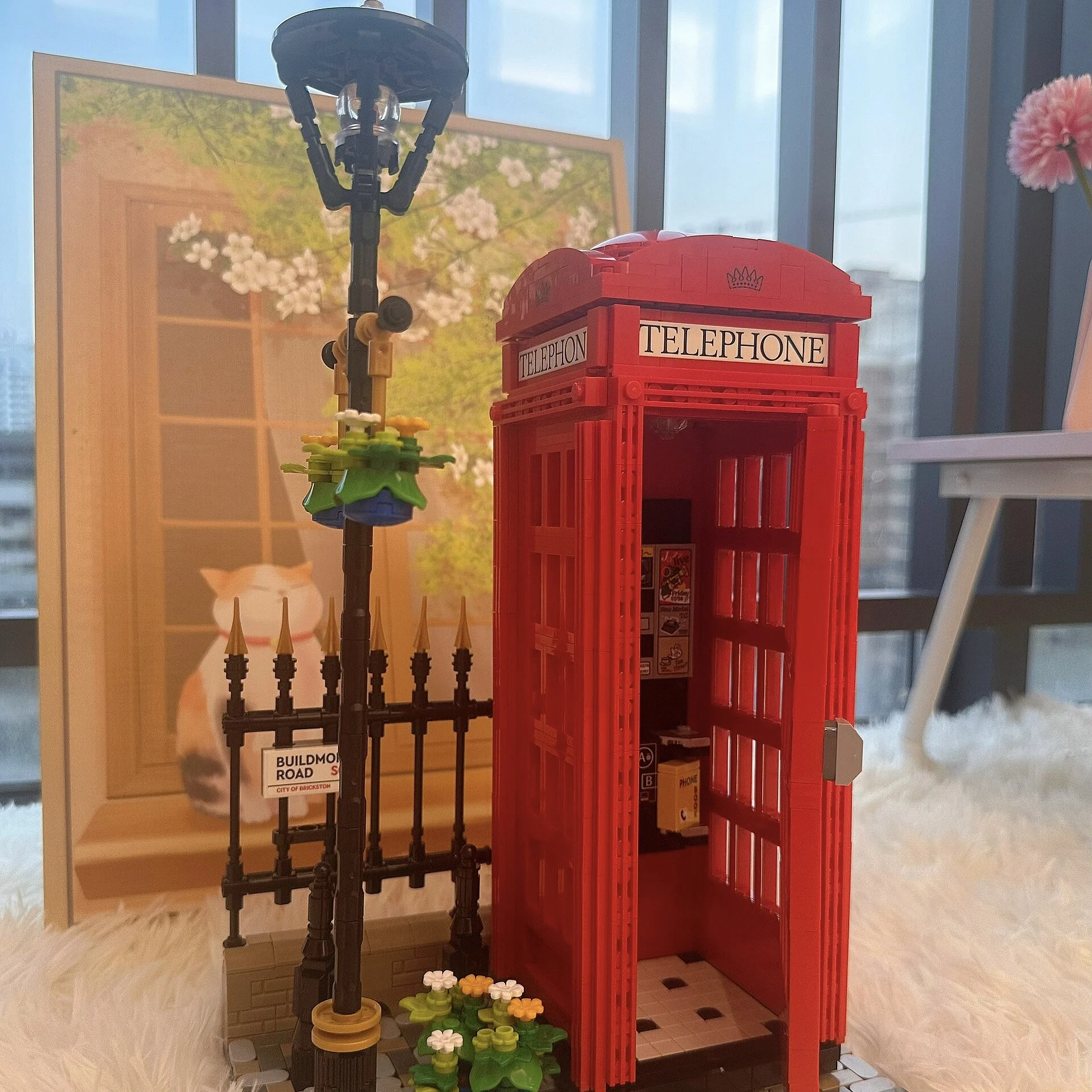 1460PCS London Red Telephone Booth Street View Series Men and Women Puzzle Building Blocks Toy Gift 21347