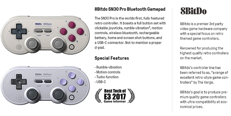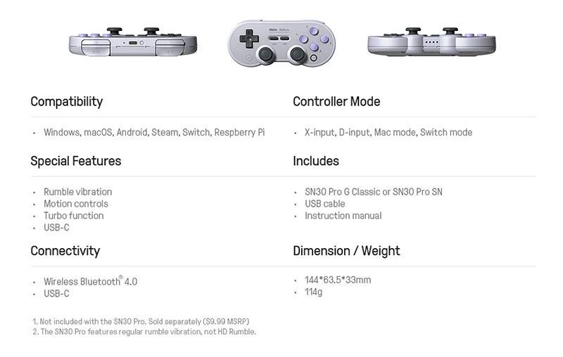 8BitDo SN30 Pro GB SN version Gamepad Controller for Windows Android macOS Nintendo Switch Steam
