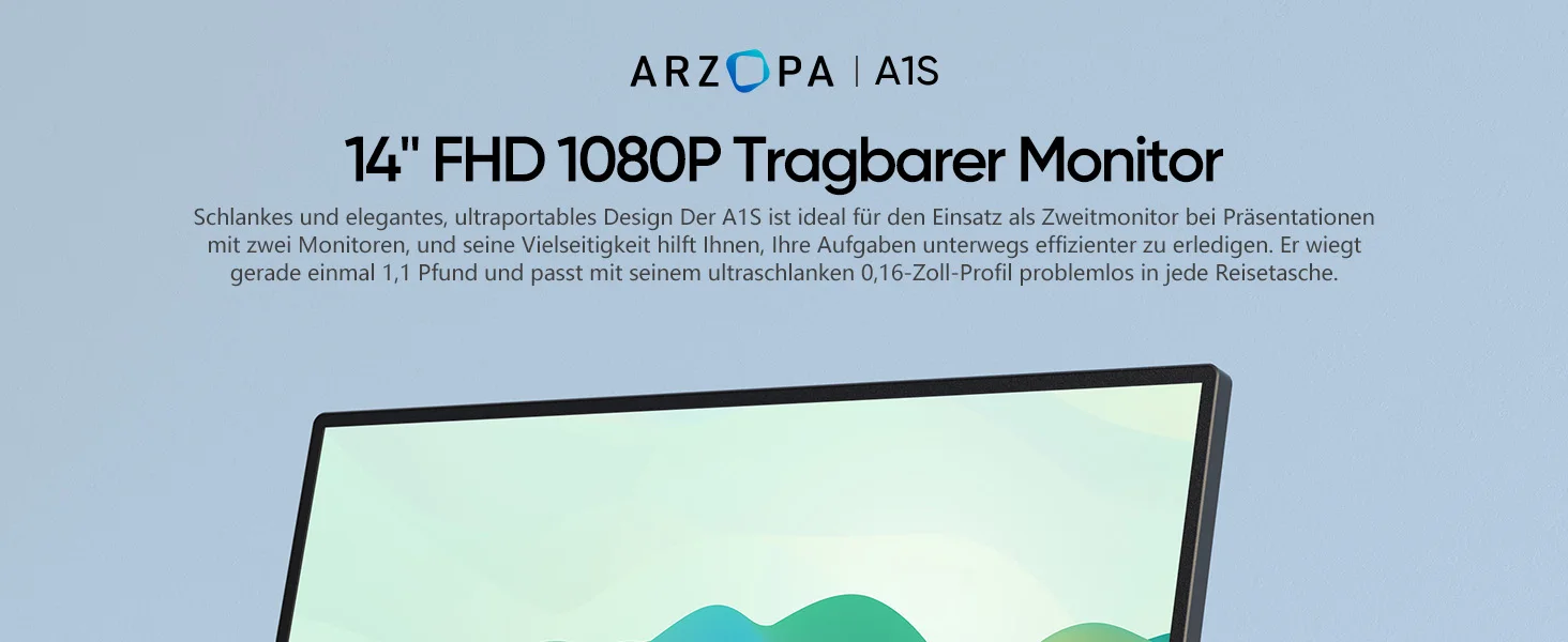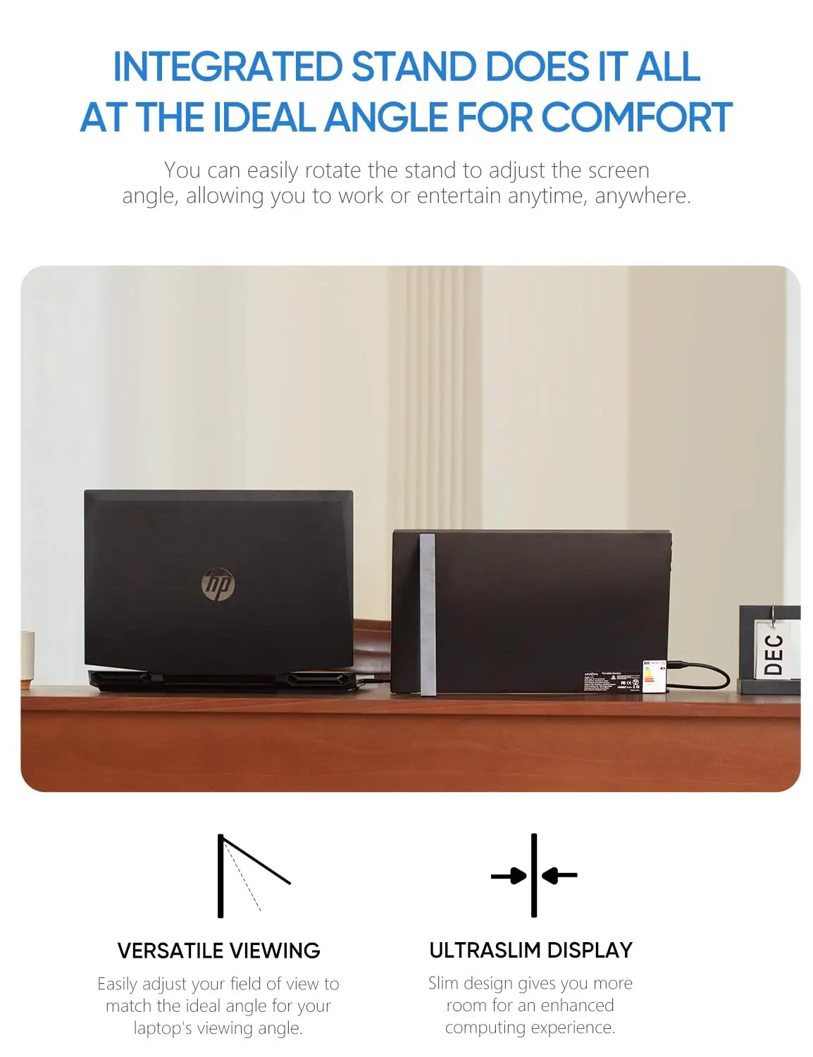 Slim and Stylish Ultraportable Design A1S is ideal for use as a secondary monitor for dual – monitor presentations, and its versatility helps you get things done more efficiently when you’re on the go. It barely tips the scales at a lightweight 1.1lbs, and with its ultra – slim 0.16in profile it fits easily in any travel bag.