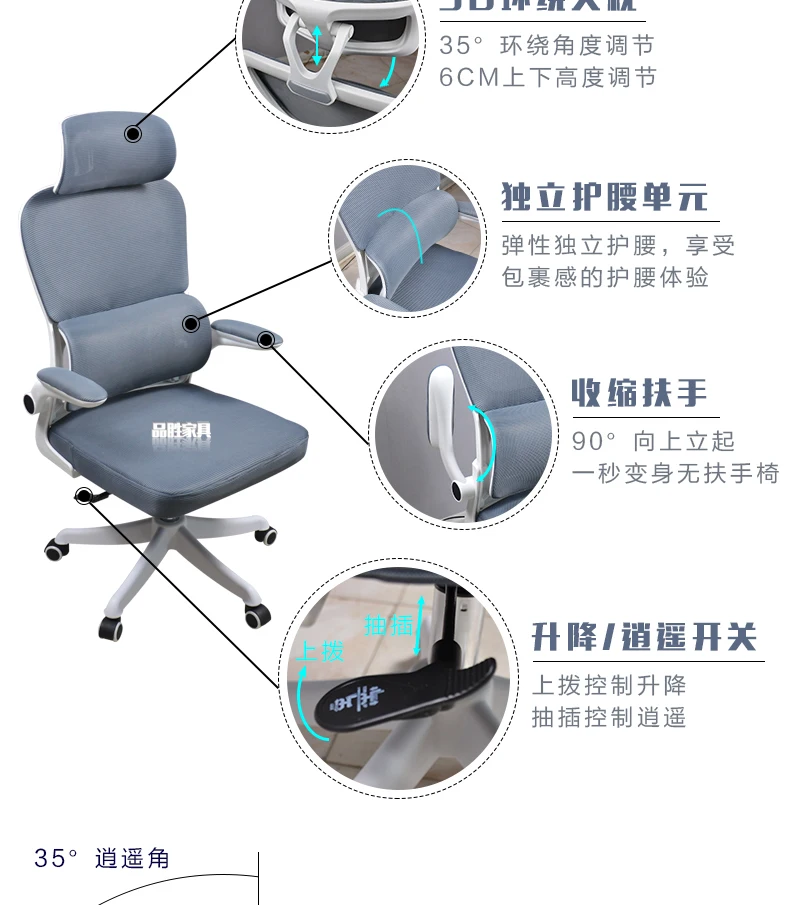 Backrest Wheels Office Chair Study Playseat Ergonomic Mobile Office Chair Luxury Comfortable Bedroom Stoel Trendy Furniture