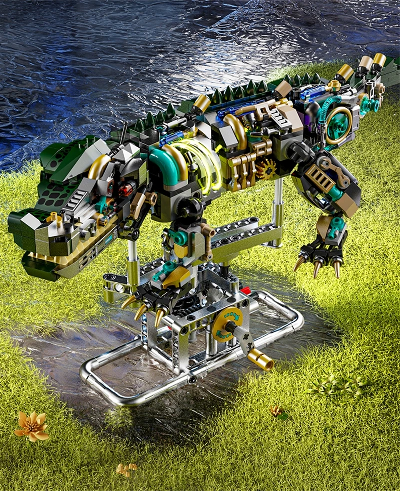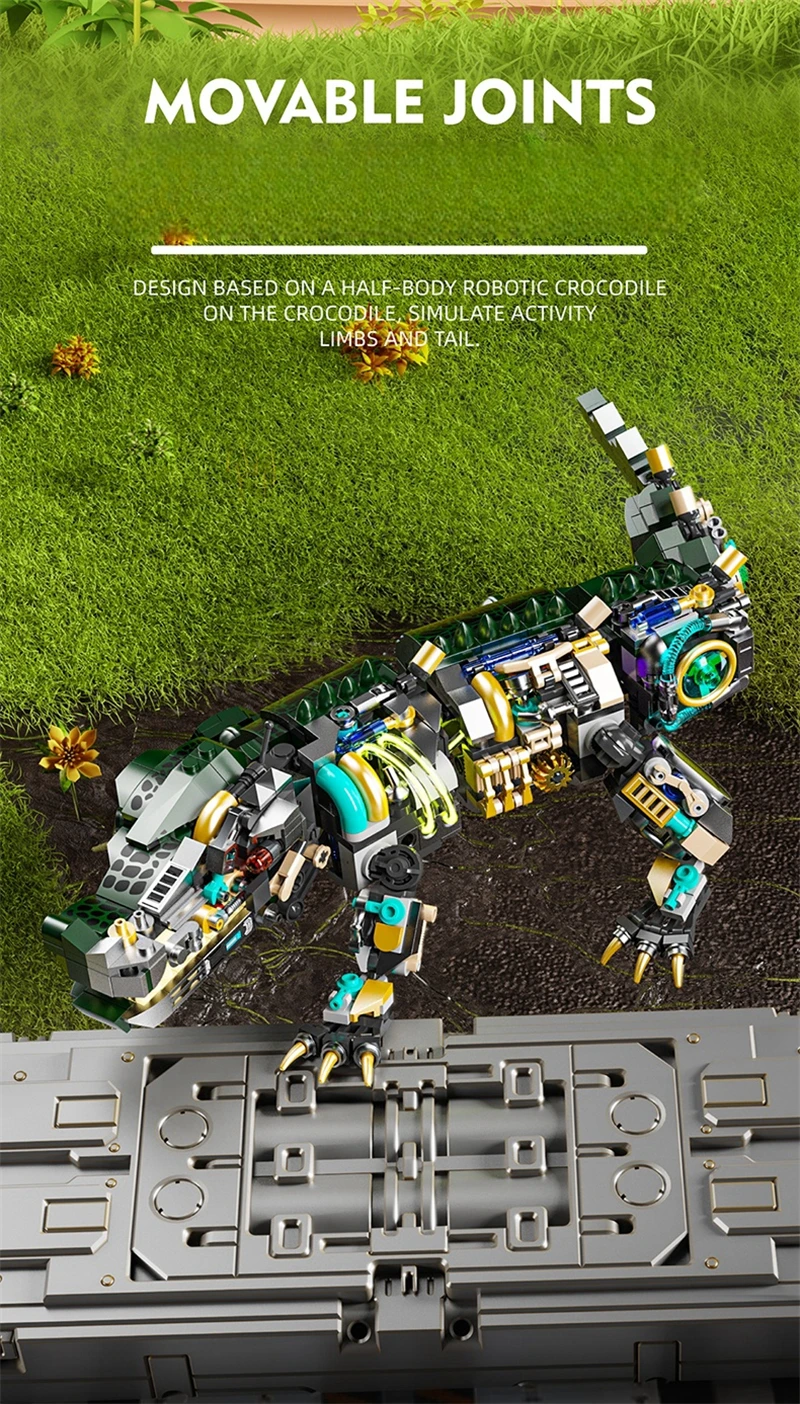 Creative Mechanical Crocodile Sea Animal Amphibians Life Set Light Building Blocks Bricks Model Assembly Toy Kid Christmas Gift