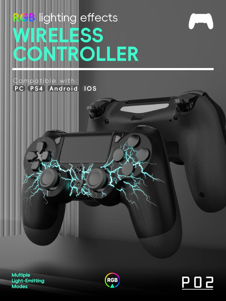 DATA FROG P02 Controller for PS4 Thunder LED Color Gamepad Bluetooth-Compatible Controller for PC Joystick for Playstation 4