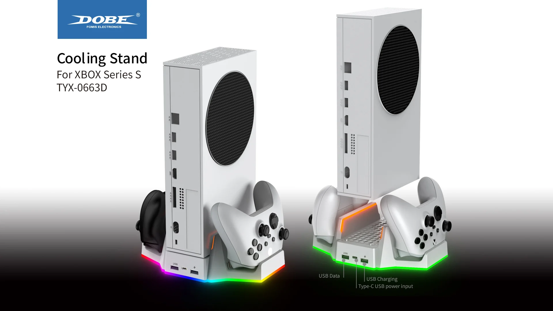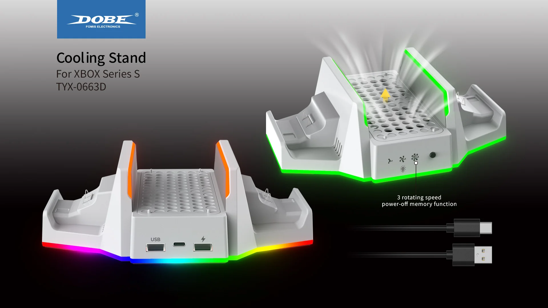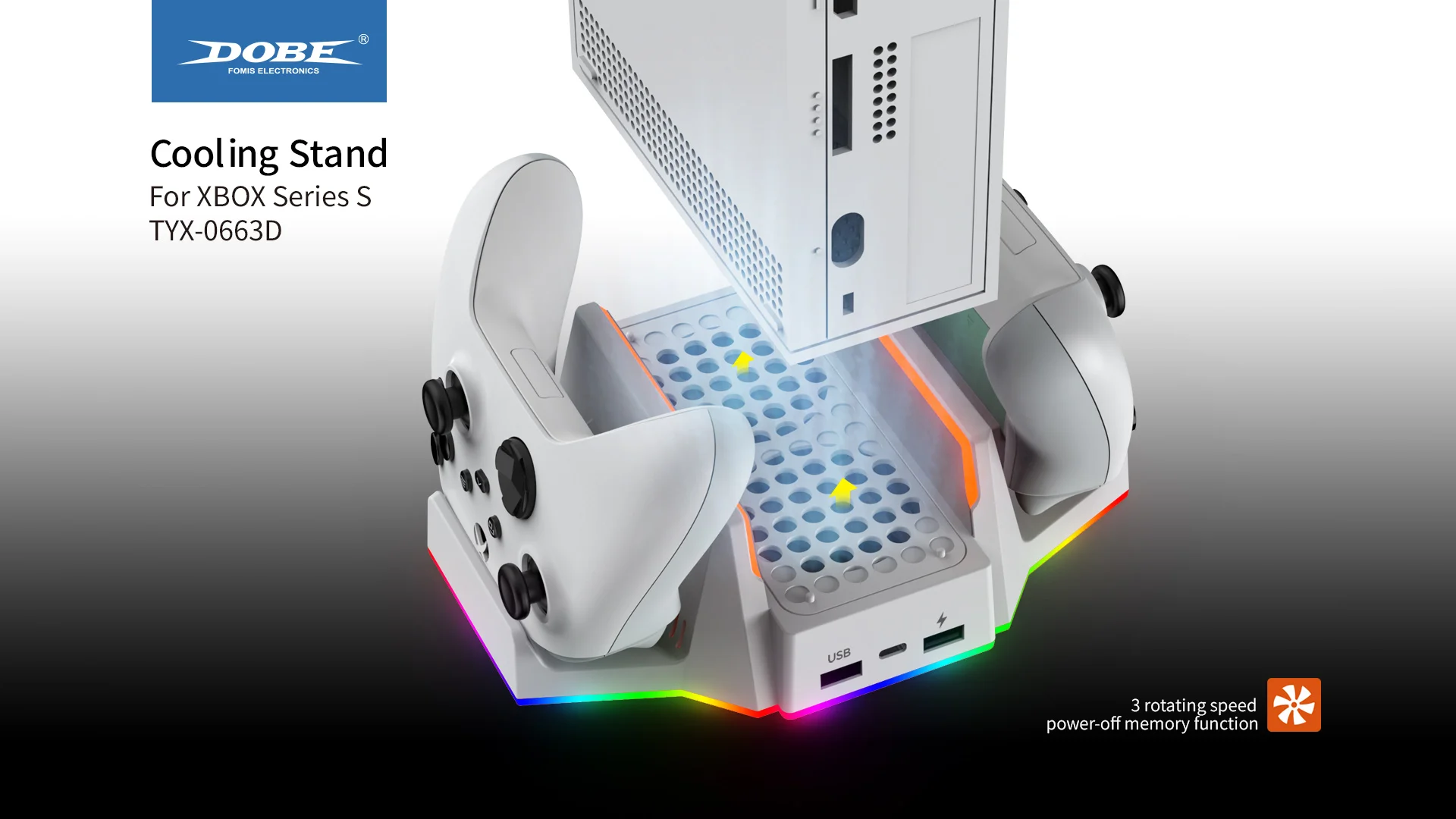 Dobe For Xbox Series S RGB Vertical Cooling Fan Stand with Dual Controller Charger Battery Pack Charging Dock Xbox SS TYX-0663D