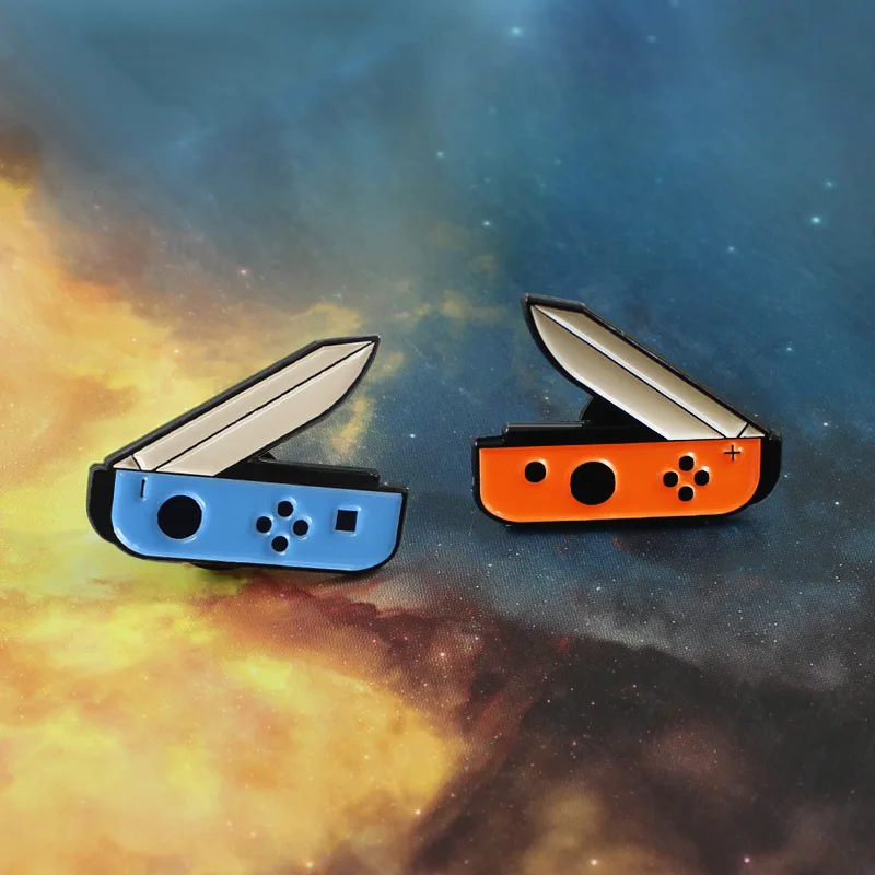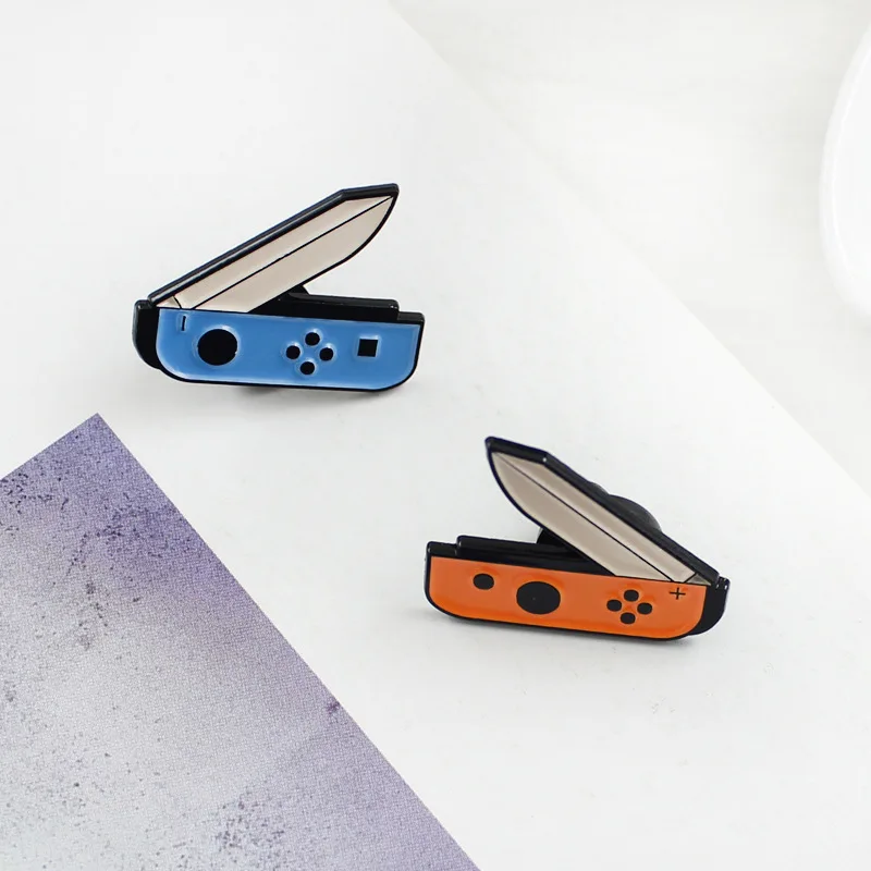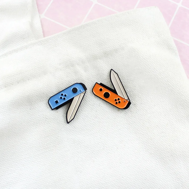 Enamel Pin Orange Blue Knife Gamepad Game Brooch Pin Switch Nintendo Gamepad Knife Jewelry Gift Boy Girl Fun Badge