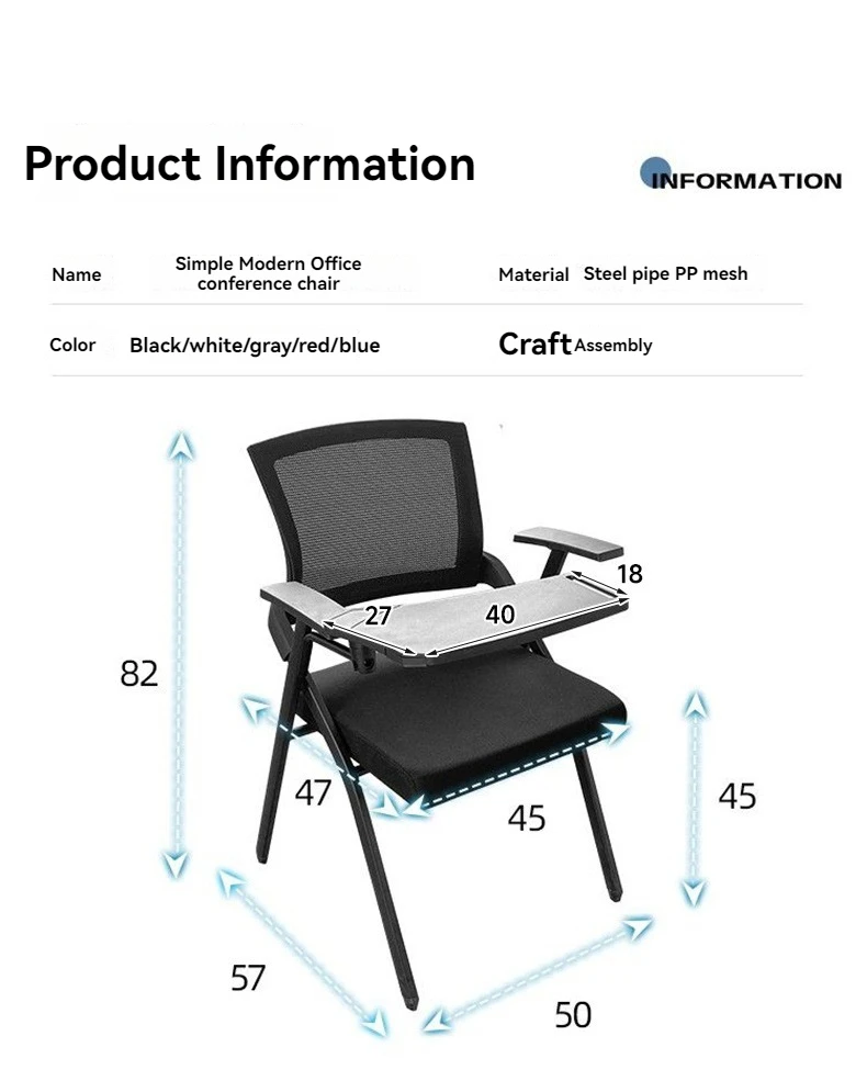 Folding training chair with desk board, foldable writing board, office meeting room, integrated table and chairs, conference