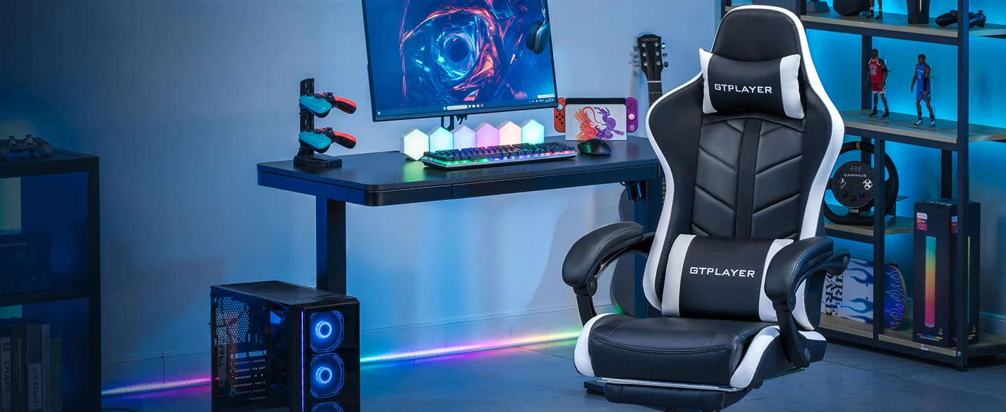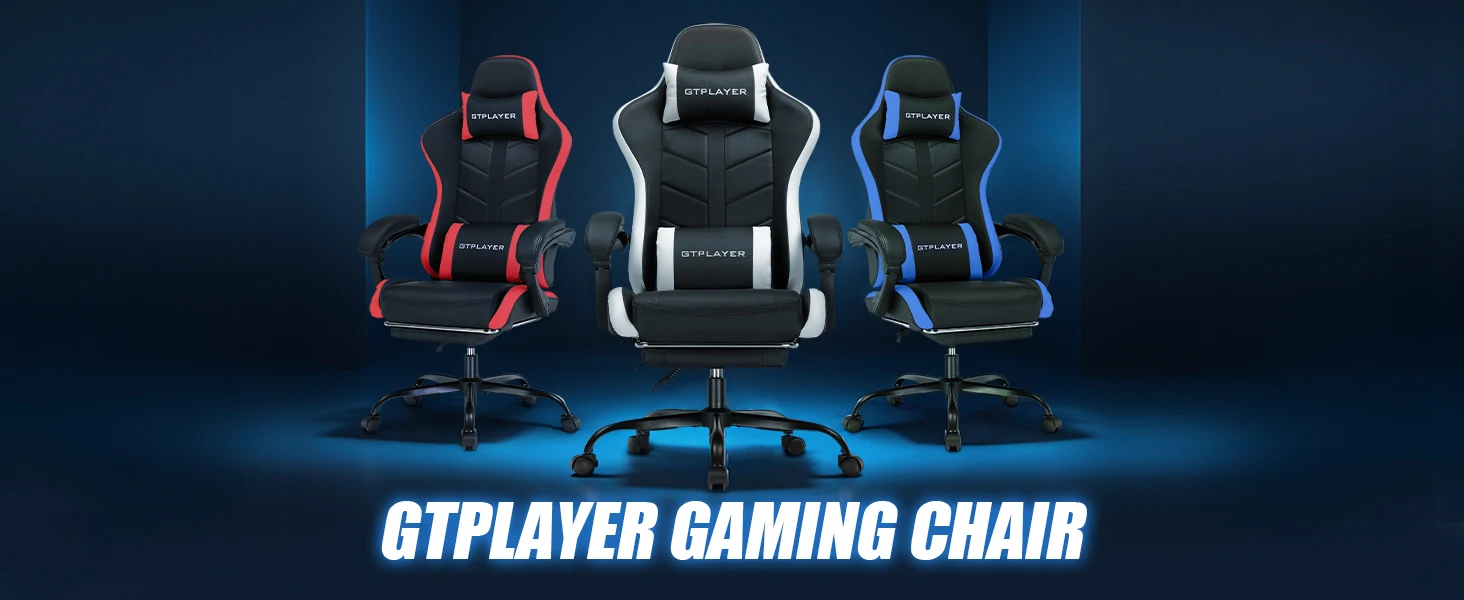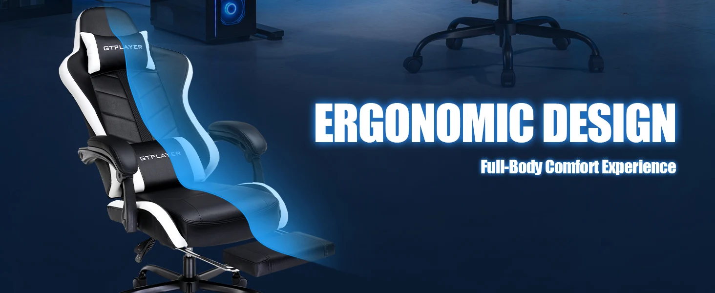 GTPLAYER Gaming Chair, Ergonomic Computer Chair with Footrest, Headrest Lumbar Support Pc Chairs Height Adjustable 360°-Swivel R