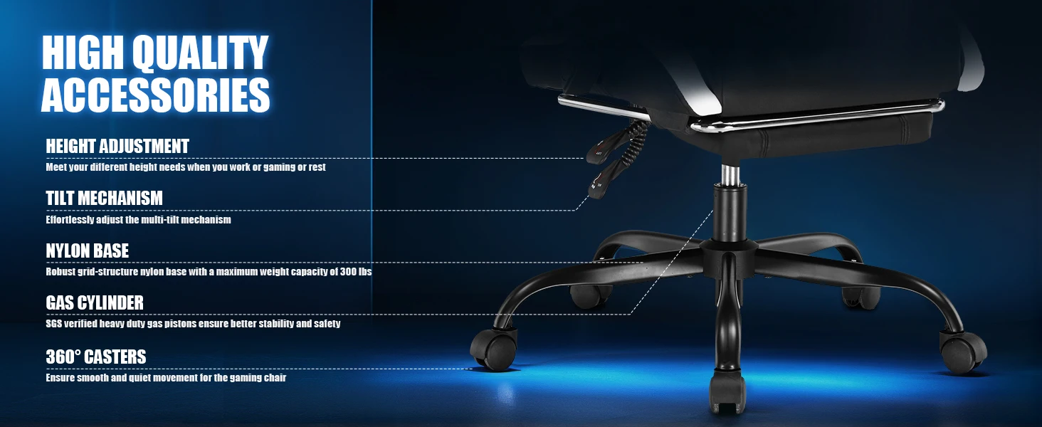 • 【Sturdy & Supportive】 Built to last, this gaming chair with footrest offers essential support for adults, whether you’re gaming, working, or binge-watching.
