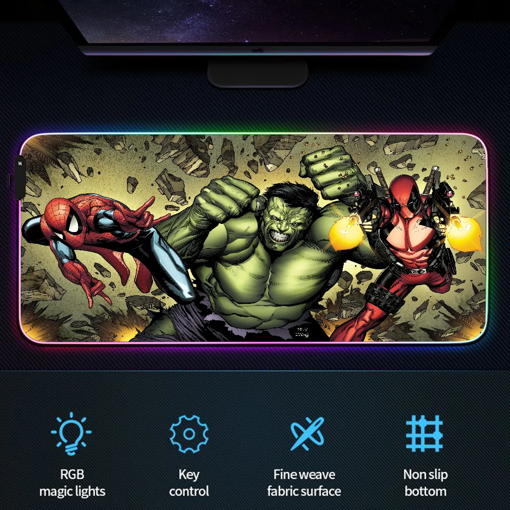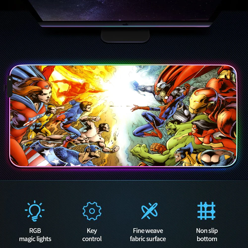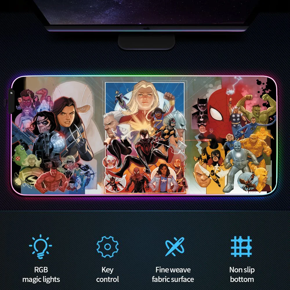 Large Marvel Mouse Pad Gamer Rgb Rubber Over Edge Non-slip Gaming Room Decoration Led Mousepad Backlight Back Light Big Mousepepad