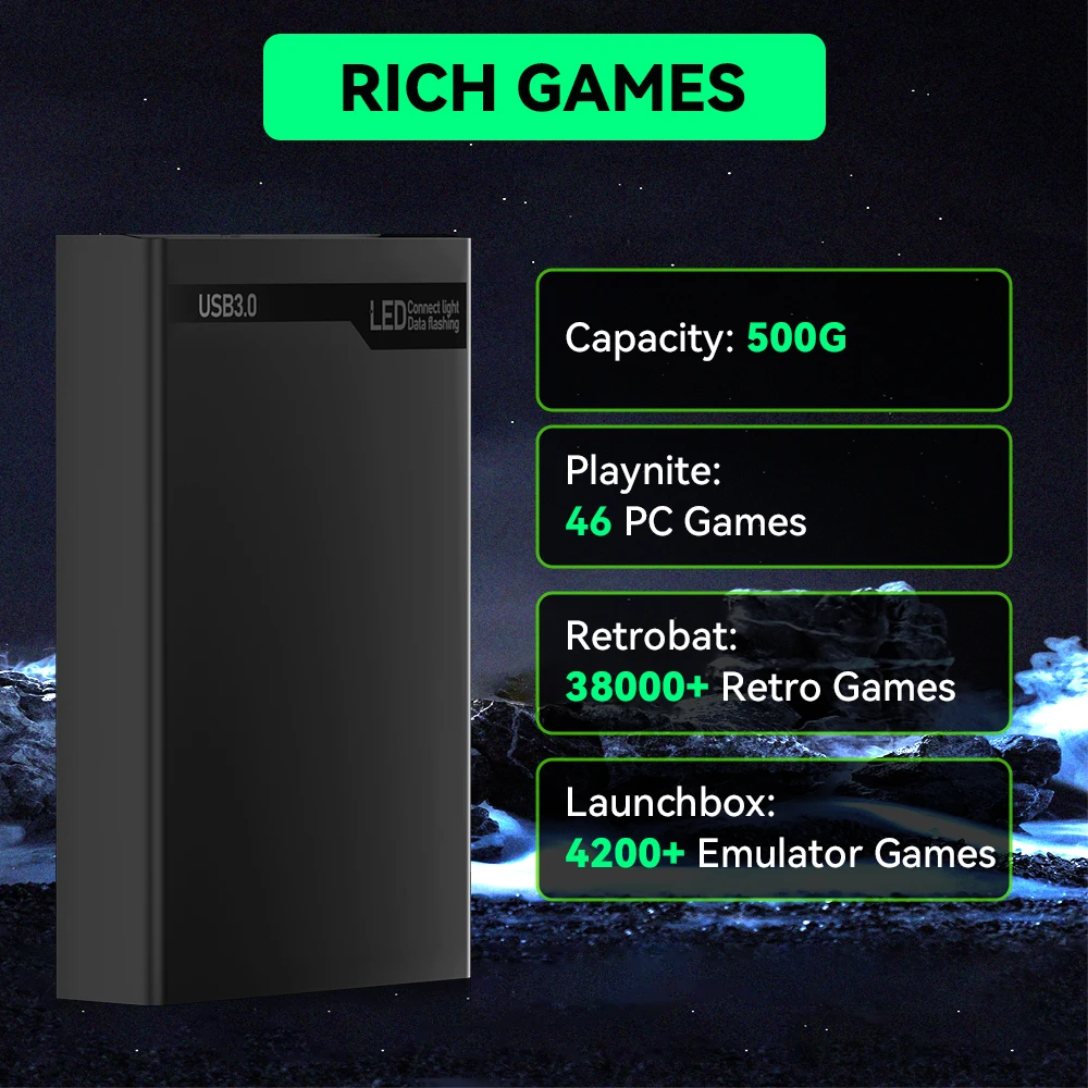 The MIX500G hard drive integrates multiple gaming platforms and manages all your games in a unified manner. It is convenient and fast, and you can start the game with one click. It is simple and easy to use.