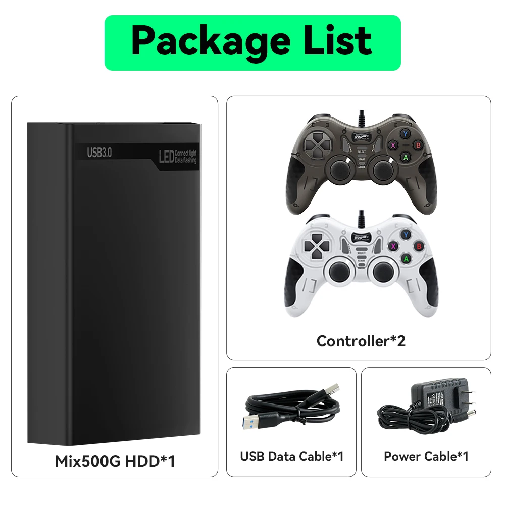 Immerse yourself in a gaming paradise with the MIX500G Game Hard Drive, featuring a vast library of 38200+ retro and PC games. With built-in emulators and plug-and-play compatibility, relive the classics on multiple platforms!