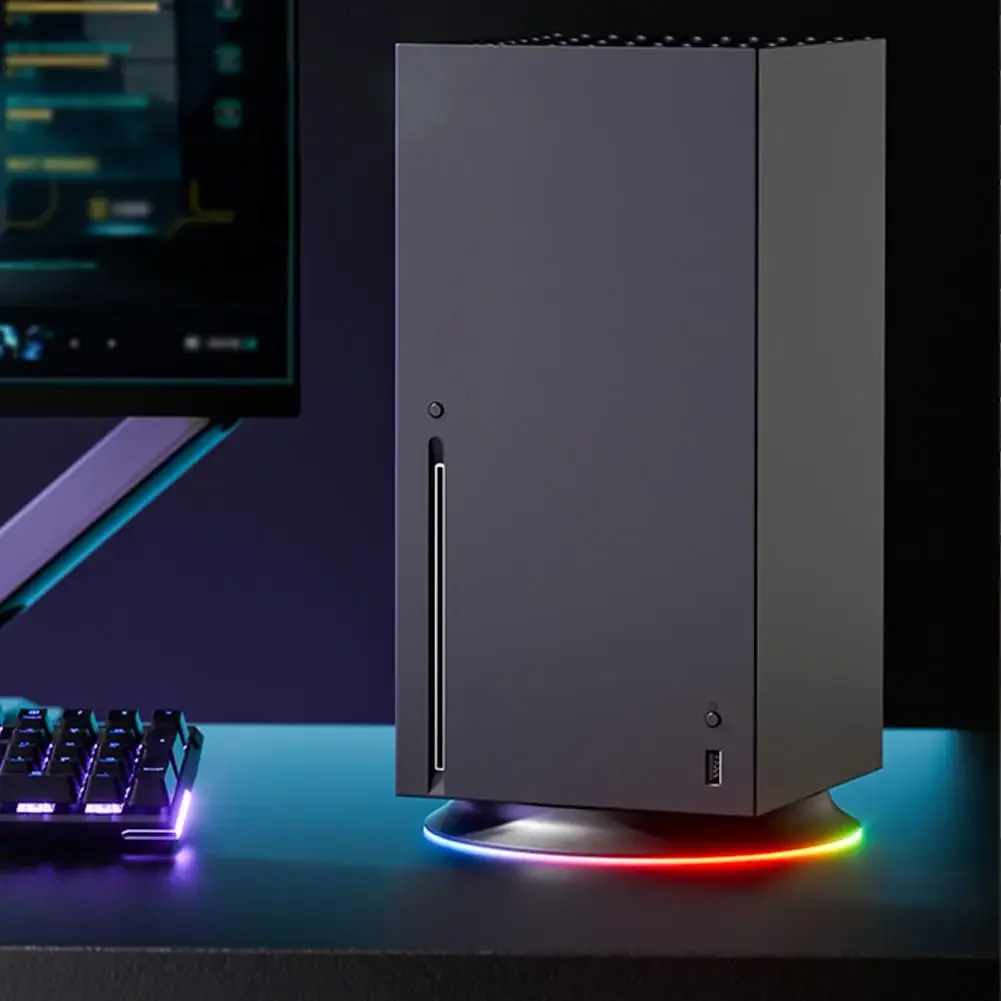 RGB atmosphere light: The console upright stand with RGB atmosphere light not only provides stable support, but also adds cool RGB effects, adding more color and atmosphere to the gaming environment.