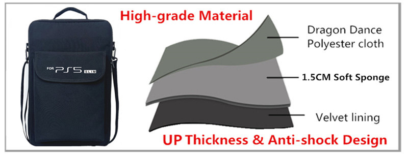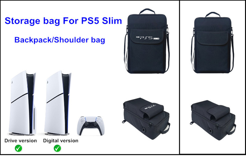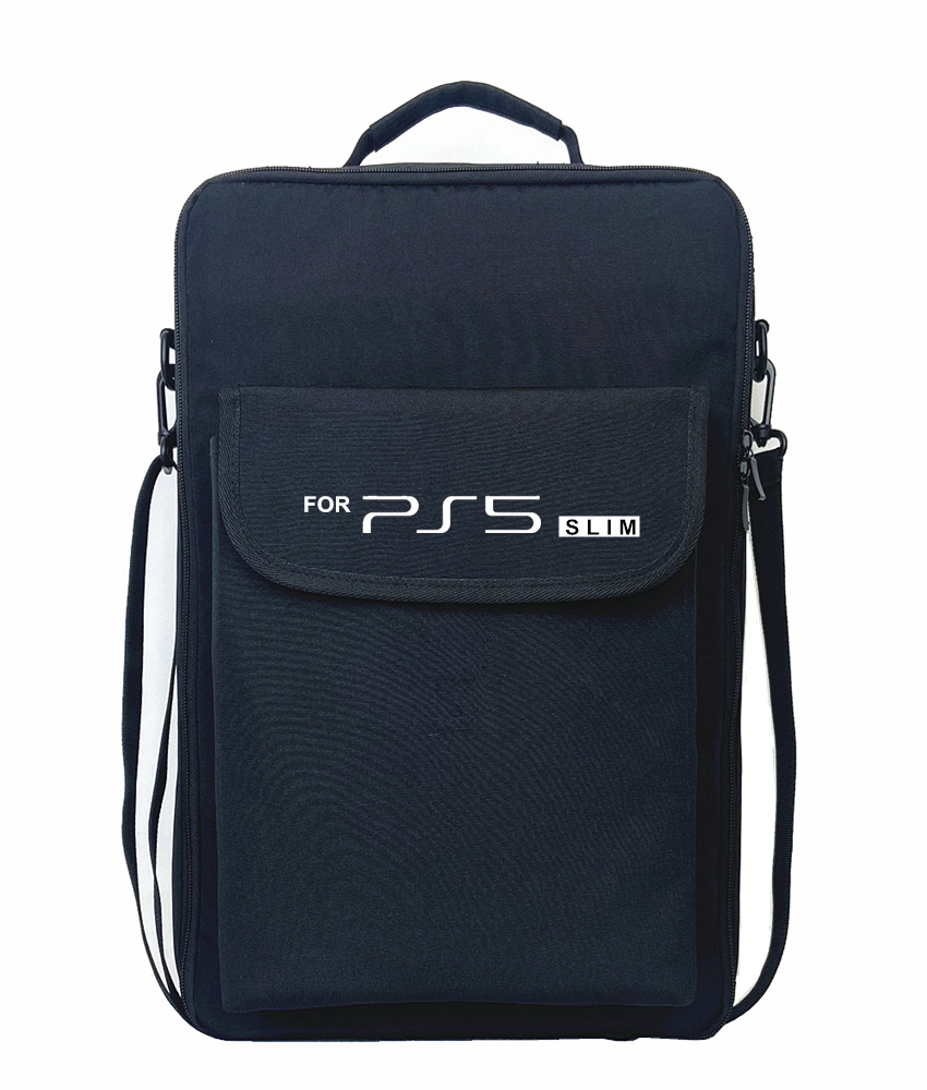 Carry your PS5 Slim console with ease and keep it protected with this storage shoulder bag. Designed specifically for PS5 Slim, this black carrying case is made of durable nylon and cloth material. The package includes 1 bag to conveniently carry your console and game accessories.