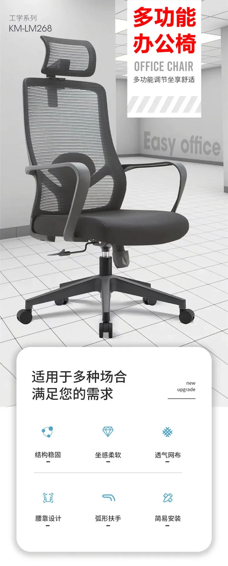 T-lovendo ergonomic office chair or desk with wheels and Lumbar support. Ideal computer and office. gaming chair office chair