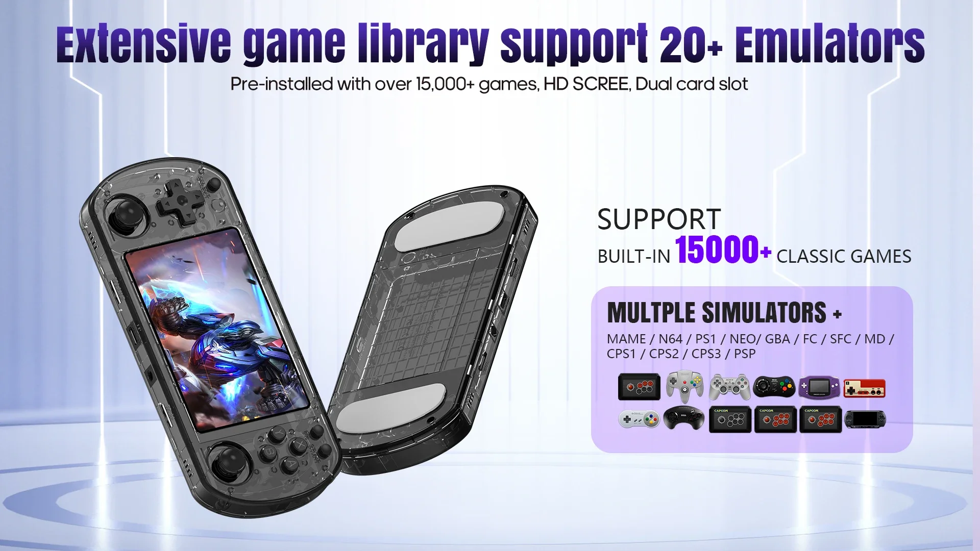 Pre-installed with over 15000+ games, HD screen, Dual card slot