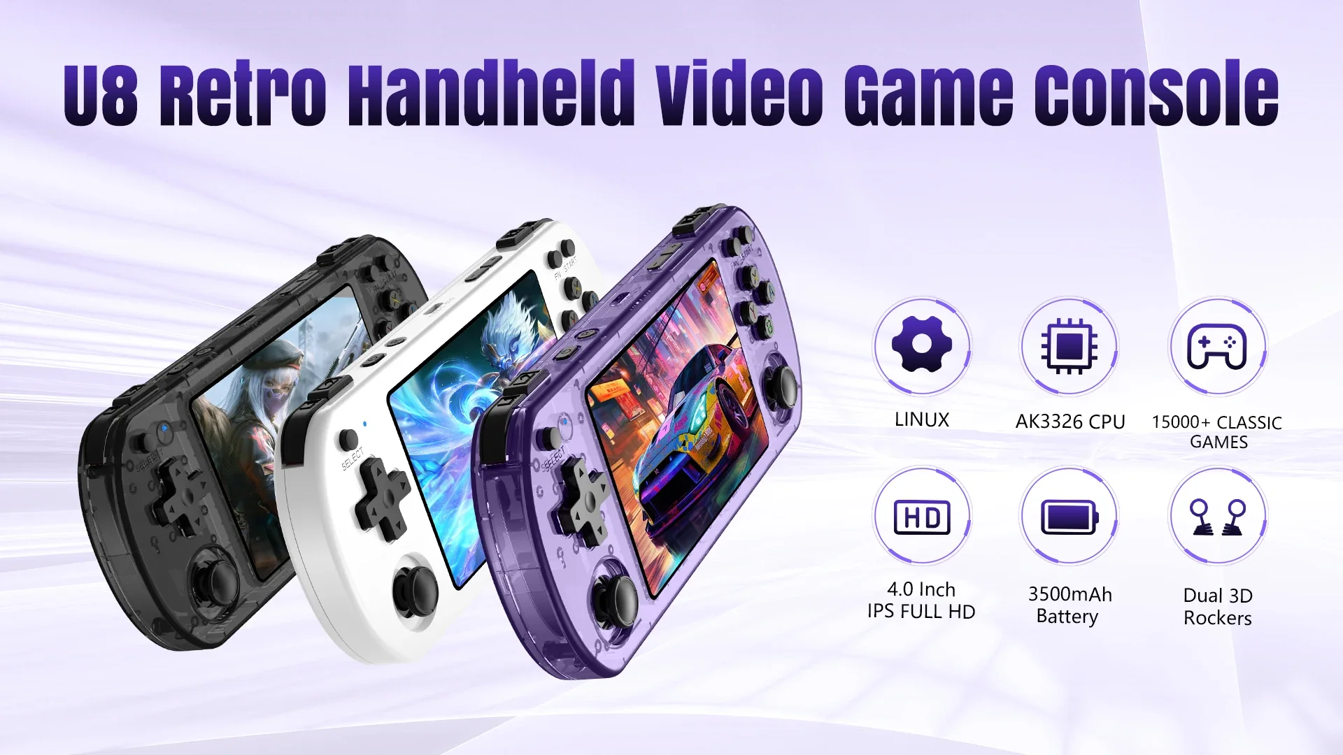 U8 4.0 inch Retro Video Game Console Linux System IPS Screen Handheld Portable Pocket Video Game Player Boy’s Game PSP GBA