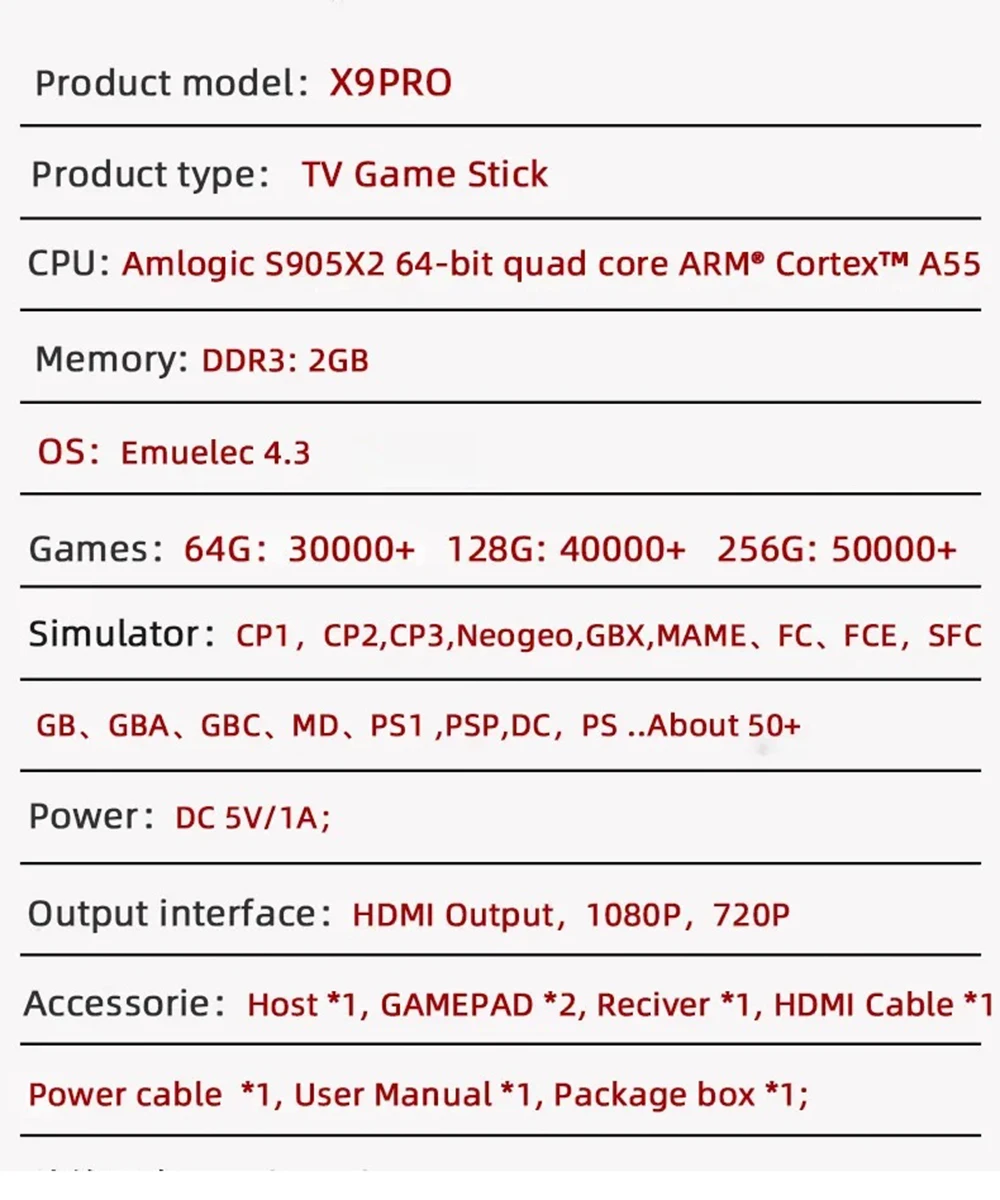X9 PRO Retro Game Stick Video Game Console 4K TV HD 50000 Games 50+ Emulators For PS1/PSP/SFC/N64 Dual 2.4G Wireless Controller