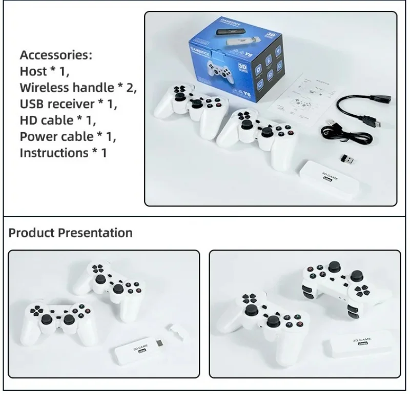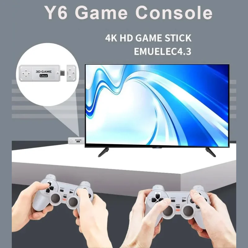 Y6 2.4G Wireless Game TV Stick Retro PS1 Family 4K HD Portable Video Game Console Support Multiplayer 10000 Games